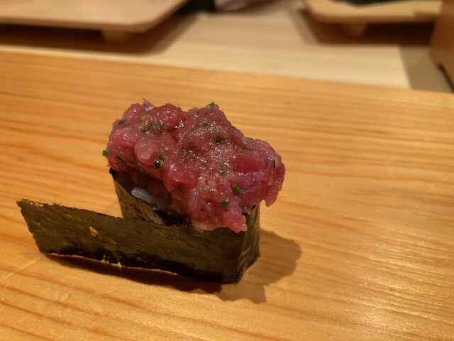 握りは甘味、酸味、塩味のバランス、口の中に残って舌で追う塩梅共に素晴らしく…小肌や鮪達が特に印象に残っています。お隣にいらした東京の有名店の大将と大将同士のやり取りも最高のあてでした。贅沢をしましたが、一点の後悔もないです笑