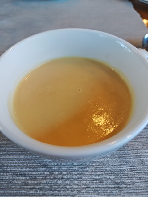 外は晴天ですが、風が強く寒い。迷わずスープを追加です。