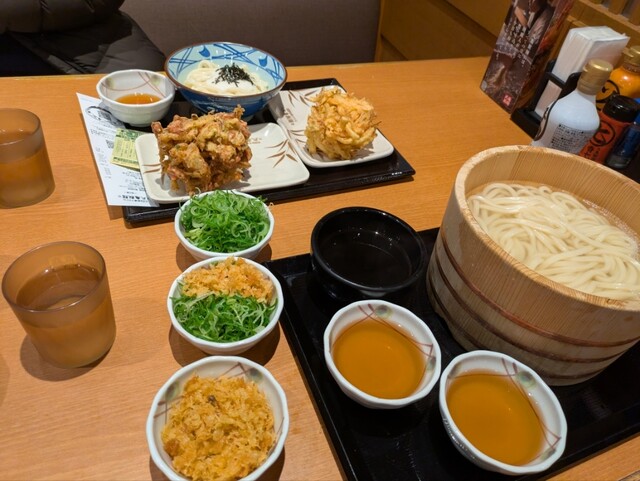 釜揚げうどんの得と紅生姜と竹輪のかき揚げを注文。