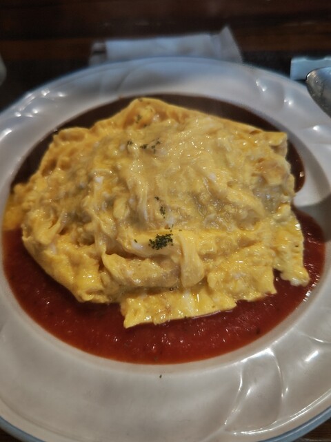 お昼にオムライスが食べたくなって美味しいお店を探していたらこちらのお店を見つけました。ご夫婦で切り盛りしていて店内の雰囲気もとても良くて居心地が良さそうなお店でした。ランチのメニューはどれも美味しそうでとても悩みましたが、元祖オムノッケのお店と言うことでオムノッケでソースはデミグラスとケチャップのハーフ&ハーフで注文しました。1つで2つの味を楽しめたのとタマゴがふわふわでとても美味しかったです