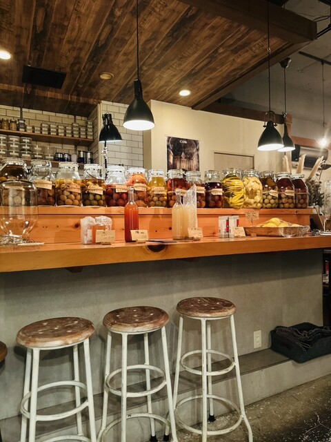 入店するとまずカウンターにずらりと並ぶ果実酒の瓶が圧巻