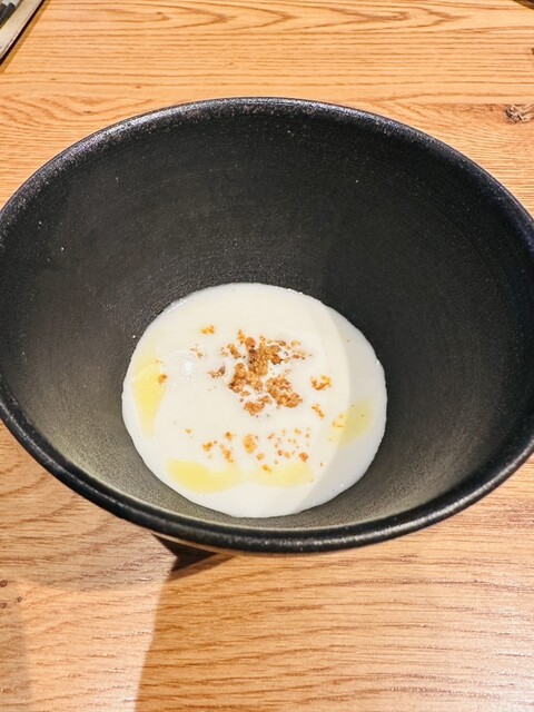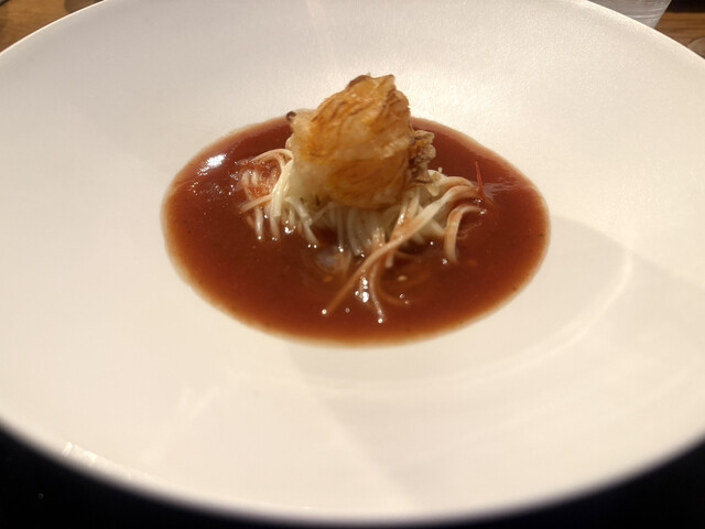 ごぼうの香りがふわっとするドロドロブルーテとサクサクの食感が最高✨