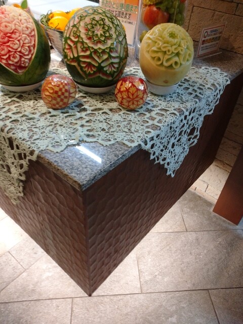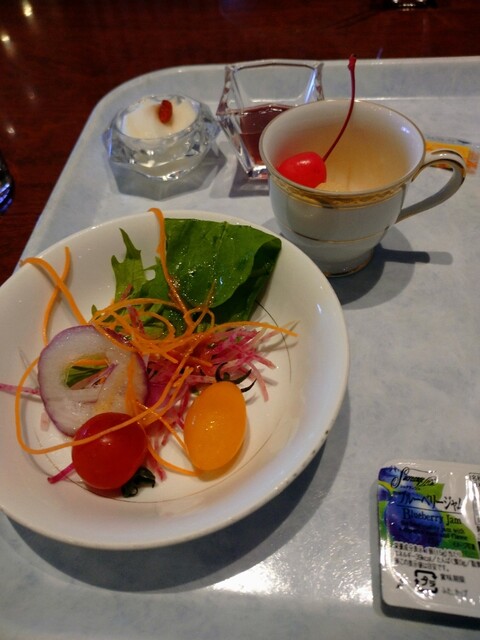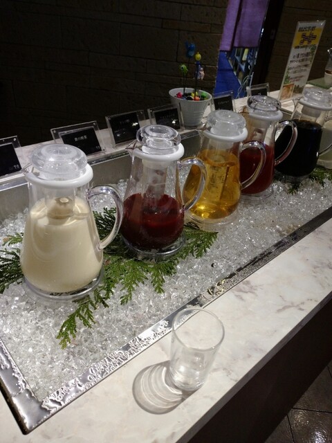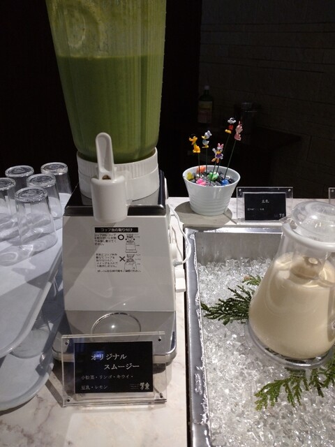 色も鮮やかでデザートもすごいし、ジュースも 緑のジュース 青汁ではなく6種類をまぜたキウイジュース、また紫の野菜ジュースもあり思わず選択。美味しかった。