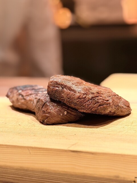 昆布締めしたお肉に直接炭をあて、香ばしさとともに旨味を凝縮。