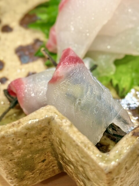 ★明石の鯛 厚めに切ったお造り、薄めに切って巻いた塩昆布巻き