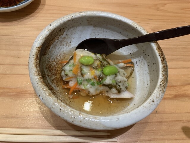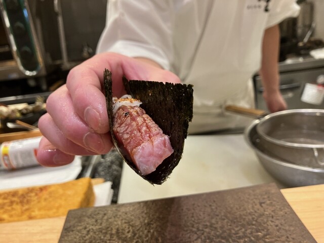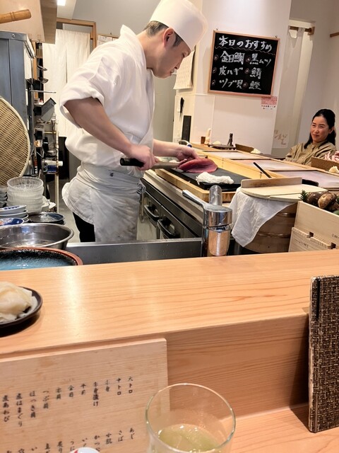 ネタ、つまみ共に鮮度抜群で美味しく烏賊を見てわかる通り丁寧な仕事をしており、雰囲気、居心地の良さ、大将も気さくな方で1人で来ても肩肘張らずに落ち着いて食事が出来ました。