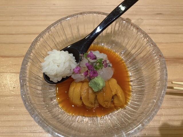 ・富山 白海老×根室 馬糞雲丹 黄身醤油