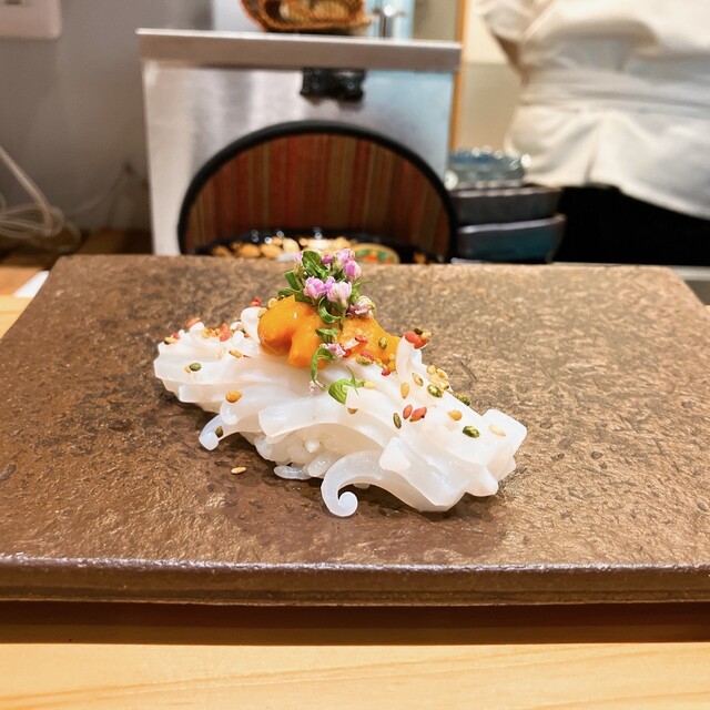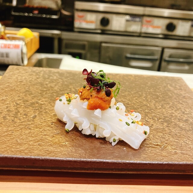 ・握り 白烏賊 雲丹 塩レモン フォルムも味も最高