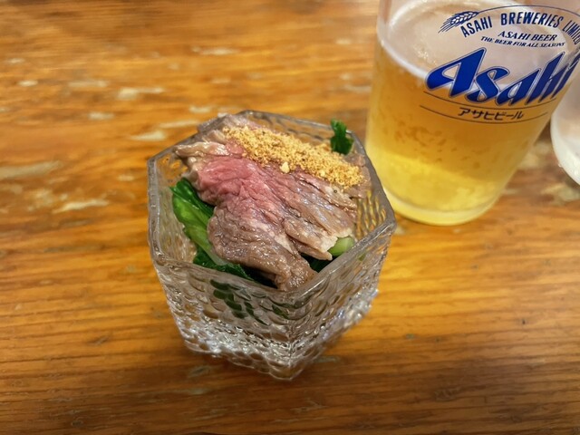 突き出しの「馬すじポン酢」も含めてすべての料...