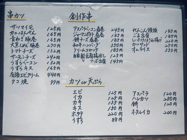 創作串とお寿司と一品などあり迷ったので、コースでお願いしました