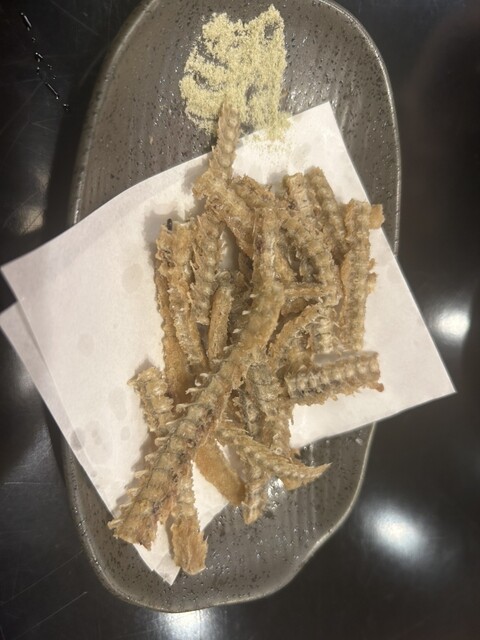 お通しに5-6本のうなぎの骨せんべいが来ました。