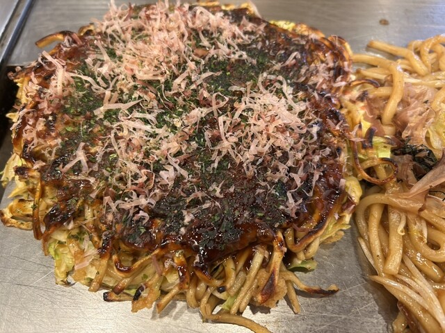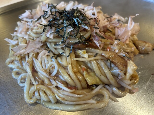 平日のランチタイムは、いつもいっぱい!たまたま、すぐに入れてラッキー!平日のランチは、モダン焼き、焼きそば、焼きうどんが大盛りでも値段が同じで超!嬉しい!!それぞれモダン焼きの大盛りで、焼きうどんの大盛りをシェア。大満足ですね!