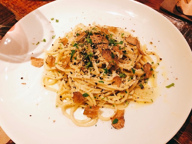 パルミジャーノと黒胡椒たっぷりのカーチョエペペです。