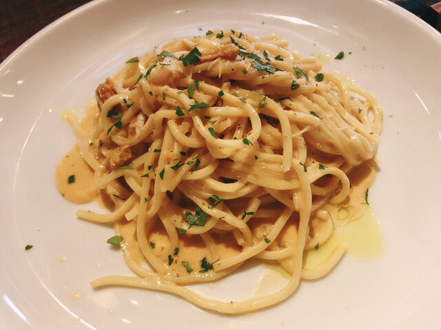 ズワイガニ?と雲丹のクリームパスタ1280円をオーダー。