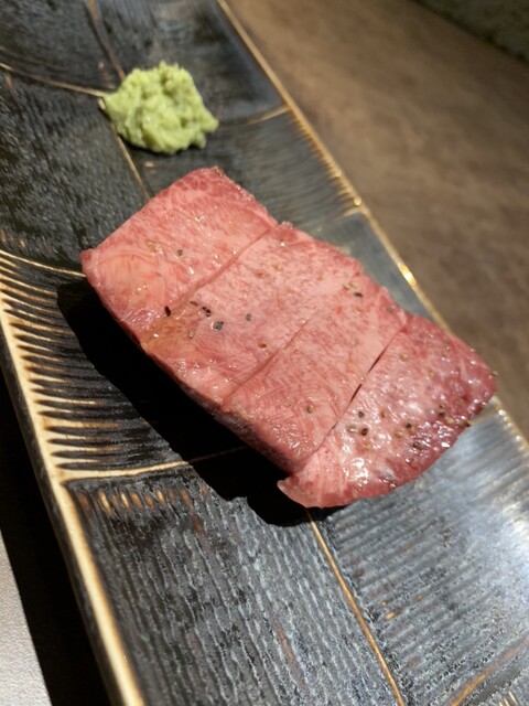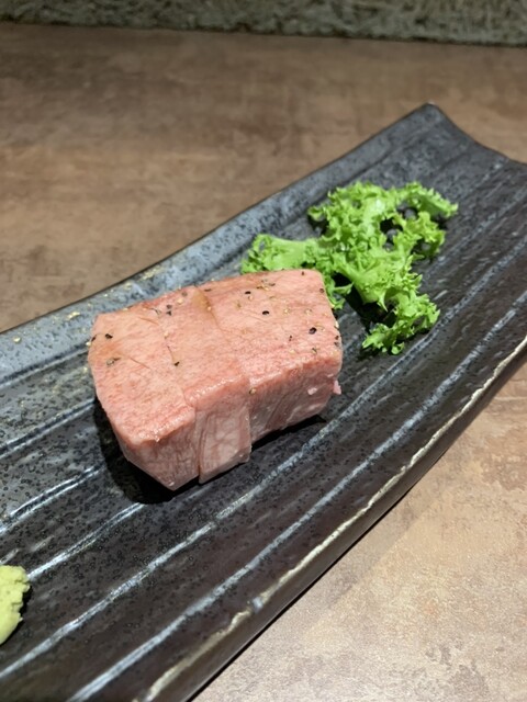 4つにカットされた状態で来ました。1面ずつ焼いてすこしレアなほうが美味しいと教えていただき、中心が赤い状態で食べました。とても柔らかく厚みがあるけど溶けるように柔らかく最高でした…ごはんに合います…高いけど食べてよかった!