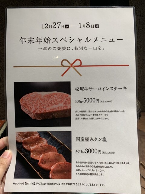 連休シーズンに行くと夜のメニューが頼めることがあるのですが、今回は厚切り牛タンがありました!!!!うれしい!!!!これは頼むしかない!!!!