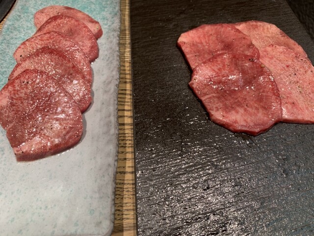 1番のお目当てはここでしか食べられない極みタン。3500円もする。期待しかない。いつも食べる上タンも頼みましたが厚さが全然違う!上タンもまあまあ厚みあるけど薄切りに見える。断面も美しい。食べてみるとすごく柔らかい。生タンみたいな感じ。焼いたのに、焼いてないみたいな…これは絶品でした。お塩やネギと一緒に食べました。