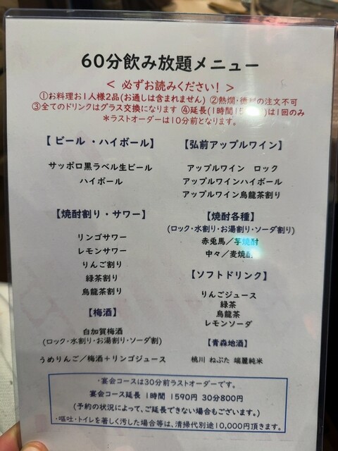 飲み放題がかなりお得だったので、普段お酒はカルトで頼む派ですが飲み放題にして良かったと思える日本酒等色々含めて充実してました