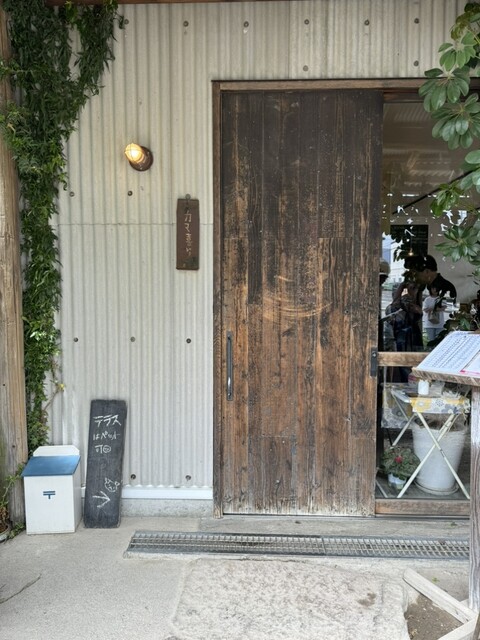 古い工場か倉庫を改装した店舗でカフェスタイル。テラス席・テーブル席・カウンター席があります。