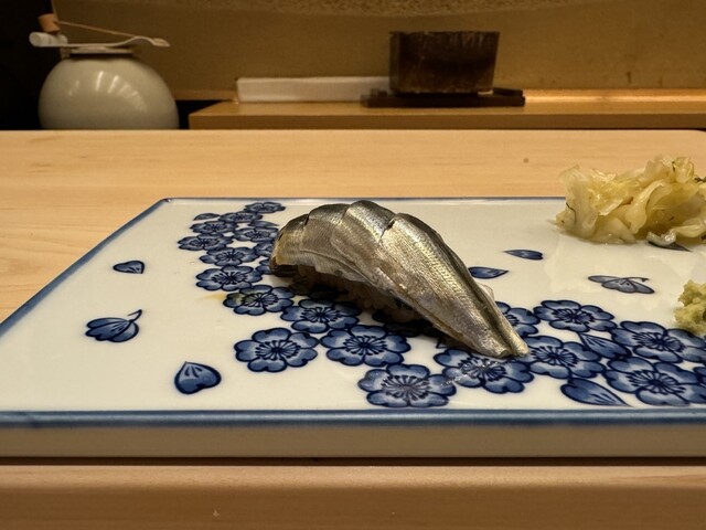 5匹で一貫。根気と手間のかかるしんこの握り。5枚は贅沢です。