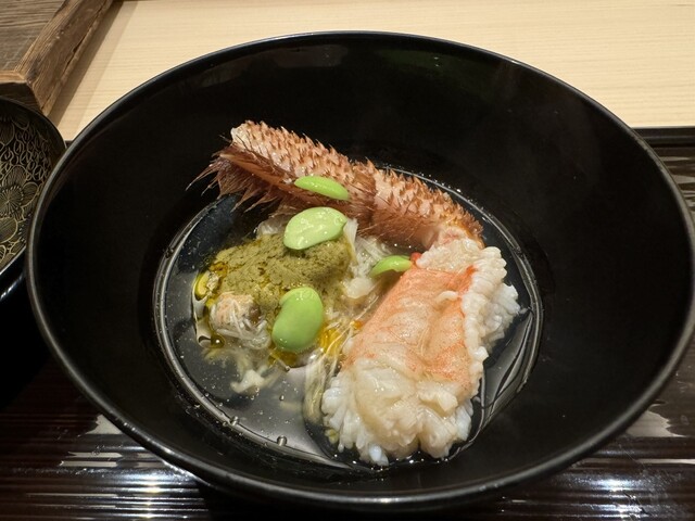 山ナメコとトリュフを使った具材も使われています。プリプリの蟹とトリュフの香り、ここでしか楽しめないお椀ですね!