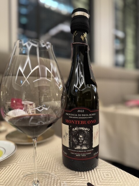 合わせたのは、ペアリングのワイン。以下のレビューではワインは割愛していますが、ペアリングもよく考えられており、また飲み応えも十分でした。「なんちゃってペアリング」ではないのは、本当、素晴らしい。