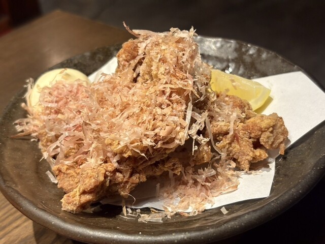 次に登場したのは土佐鶏の唐揚げ。これはもう言うことなし!外はカリカリ、中はジューシー。衣の香ばしさがちょうど良くて、噛むたびに鶏の旨味が広がる。これはレモンを軽く絞るとさらに美味しくなるやつね。パリパリの食感が楽しくて、気づいたら無限に食べちゃいそうになるわ。