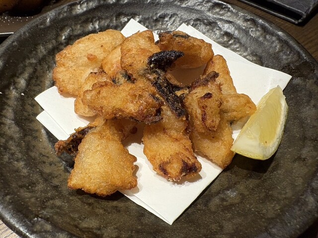 最後にうつぼの唐揚げ。うつぼってちょっとクセがあるんだけど、これがまたお酒と合うのよね~!外はカリッカリ、中はふんわり。独特の風味があって、一度食べるとクセになる美味しさ。お酒と合わせると無限に食べられるやつよ。