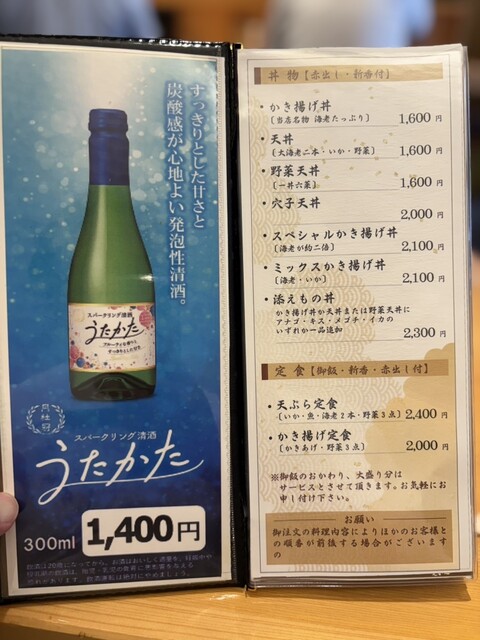 余力があれば、かき揚げ丼に穴子天を追加した添えもの丼2,300円もありかと思います。