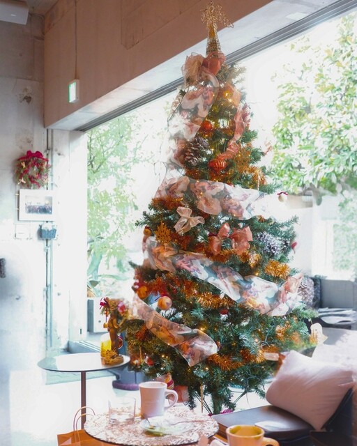 通りがけに見えたクリスマスツリーに誘われて立ち寄ったカフェ。12/25までの限定でクリスマスドリンクとチーズケーキが楽しめます!
