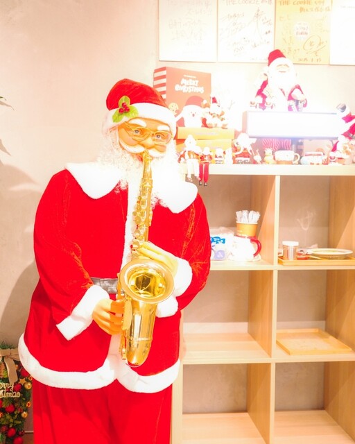 店内は広々としていて、そこかしこにクリスマスのオーナメントがあるので全部が当たり席な気がする。店内入り口には巨大なツリーが置いてあって、注文した商品を並べて写真が撮れるフォトスポットもあります。