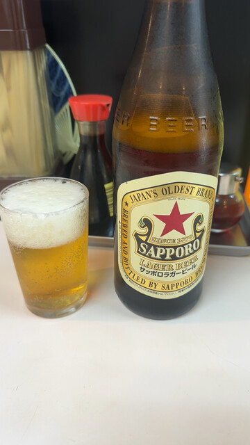 冷蔵庫を見ると、なんと赤星と、スーパードライの瓶が。