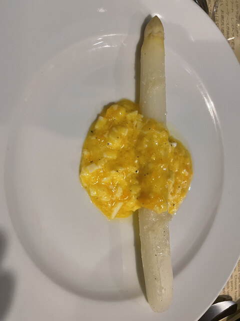 太いアスパラも平貝とのコラボで提供してくれるなど、奥行きの深いレストランである。