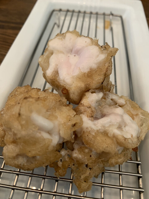 こんなに大きな白子の天ぷら初めて。中はクリーミーでトロトロ。最高でした。