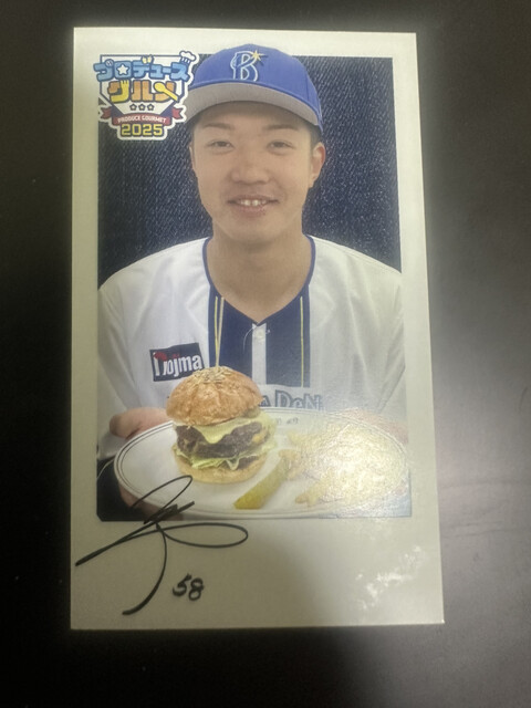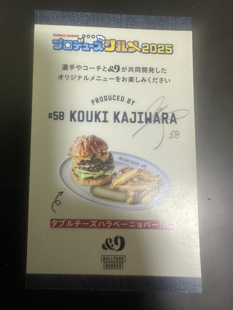 このところずっと選手のプロデュースハンバーガーばかりを食べていましたが今日は初心に帰って&9バーガーにしました。飲み物はいつも通りウーロン茶ですが、追加でスターナイト限定(?)のドリンクも注文しました。こちらは選手が印刷されたコースターがもらえます。