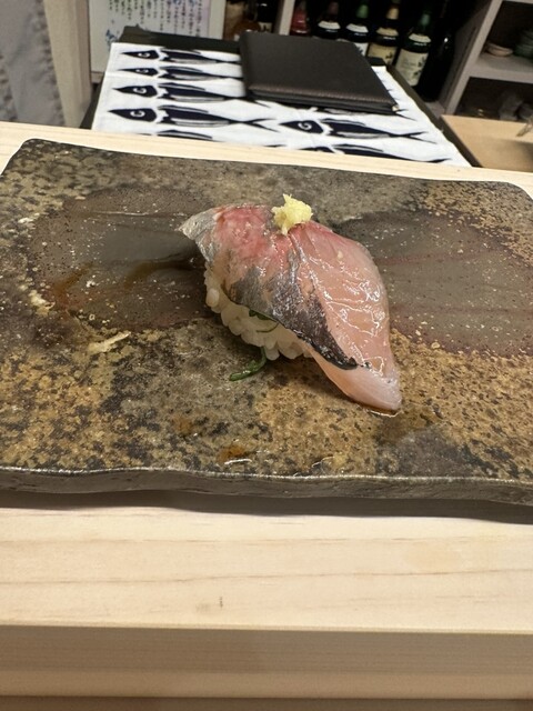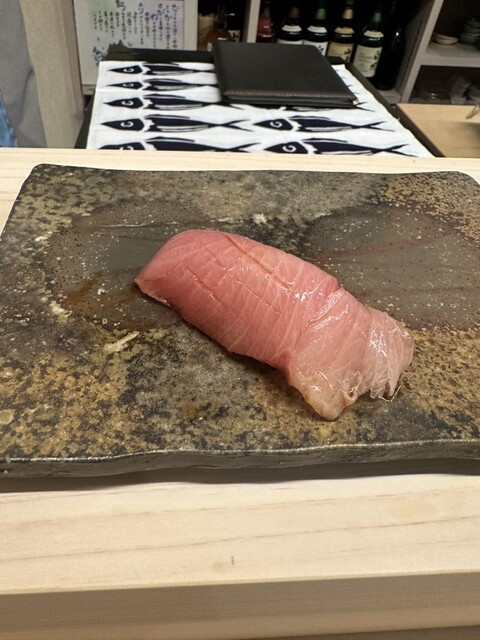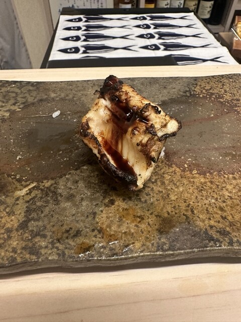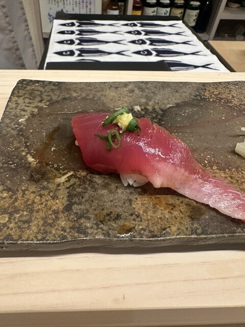まずはマグロからスタートです。勝浦のマグロとのことですが、ネタにワサビを付けた後にネギトロを少し乗せてからシャリといった工夫がされてます。めちゃくちゃ美味しいです。次はヒラメ、ブリときて横須賀は走水のアジです。このアジがめちゃくちゃ美味しいです。続いて赤貝、ホタルイカ、金目鯛です。赤貝はコリコリとした食感がたまらない。ホタルイカはミソの甘味が最高で金目鯛は皮目を軽く炙っていて最高の一品です。新玉ねぎの茶碗蒸しにカツオ、玉子焼きに穴子と巻き物です。穴子も完璧、巻き物はネギトロ、トロタク、梅の3種類。