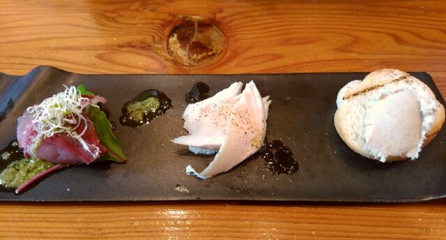 鯛のカルパッチョ、アルファ大事 冬瓜と鳥ハム カナッペのリエットはゆず胡椒風味