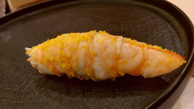 確か横須賀産と言っていた気がするが鯛の白子乗せ口にいれて解けるシャリとネタを味わって居ると勝手にクリーミィに味変する 鮪赤身 縞鯵備長炭で軽く炙ってます。 干瓢巻き鮟肝入。驚いた…度肝を抜かれるのではなく度肝入ですね(笑)思ったより肝の感じは無かったと思います。 鰆燻香がします。あら井に来たら車海老は食したい❕良い海老を選んでいるんだと思いますが茹で過ぎない加減が良い。他の魚も旨いし特に海老好きと言う訳ではない私でも気に入っているプリプリではなくムギュッと少しグリュっとしてる感じ♥中トロ カワハギ肝乗せ、私が最も好きな魚だ。人に好きな魚を聞かれたら真っ先にカワハギと言っている。勿論、肝醤油で。 雲丹ダレてないです。 鯵、包丁を入れた間から見える鯵肌がセクシ〜です♥ ネギトロ海苔の香りもグー。香物美しいのでブローチにしたい位だ。香物界のカメオと呼ぼう(笑) 卵、 御椀 デザートはリンゴの氷菓子 お茶までも美味い…心のなかで呟いた\(^o^)/美味しかったぁ〜♥ こちら税込6600円のコースです。最後まで見て下さって有り難うございます(^o^)♬ あくまでも内緒にして下さい。