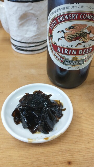 ロースカツ定食800円、わさび昆布100円、瓶ビール600円を発注。