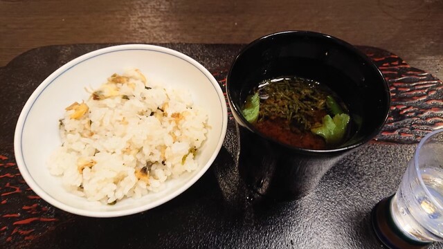 烏賊麹和え、蛤おかき揚げ、海老、能登たまごカステラ、おくら酒盗漬け、葉山葵吟醸和え