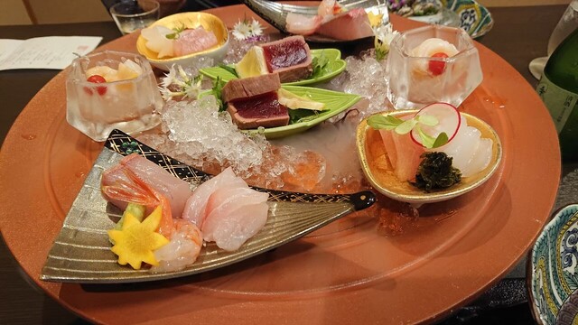 越中梅貝、鮪、能登ひらまさ、天然鯛、かじき、甘海老他