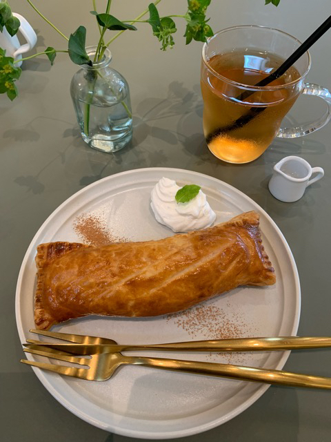北千住駅を一番北端から出れば徒歩5分の千代田線線路沿い。目当てのリンゴパイが売切れで、代わりにバナナシナモンパイ。焼くのに30分所要。