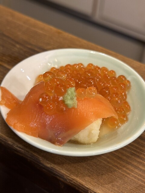 いぶりがっこが効いたポテサラのスモークサーモン巻きも美味しすぎる✨