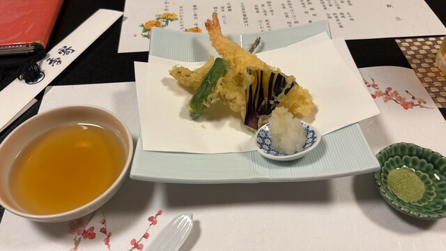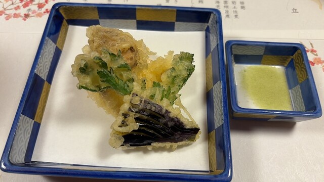 河豚天麩羅 春菊 茄子
