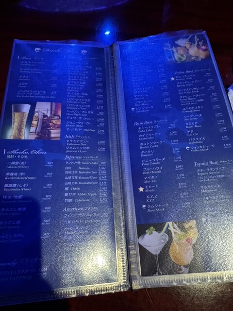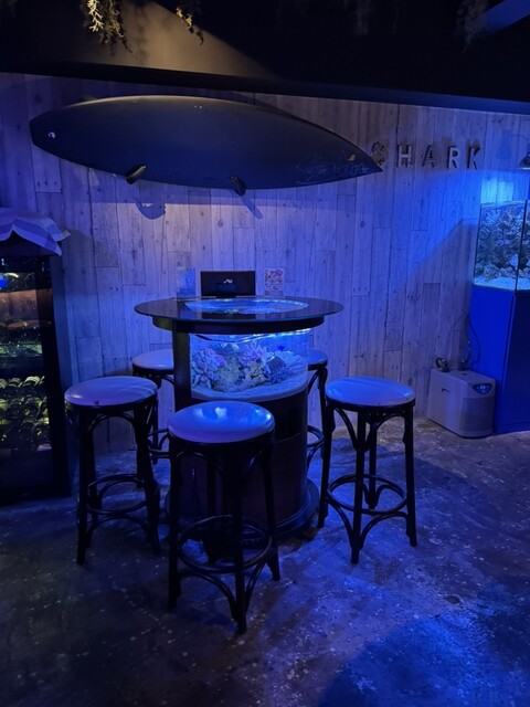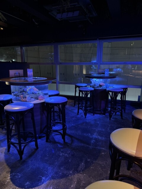 青い照明に水槽が浮かび上がる店内は落ち着いたおしゃれな空間でデートにもぴったりです。