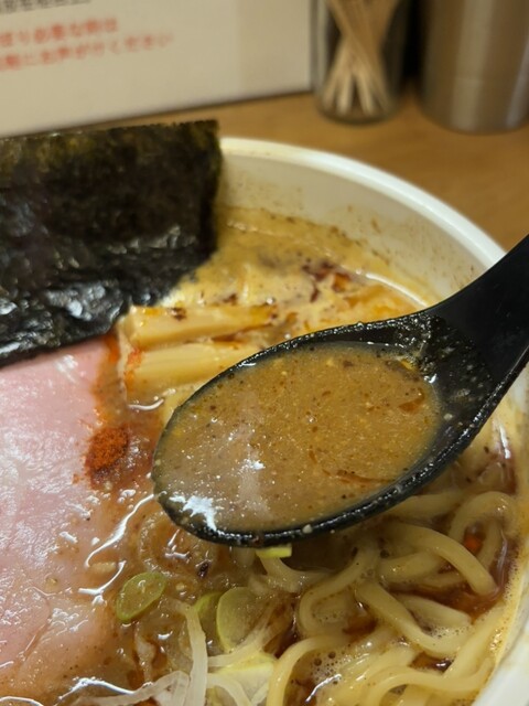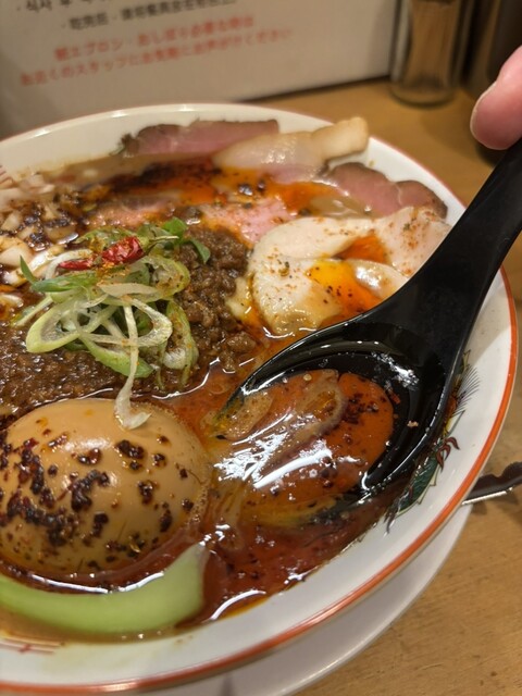 ピリッと辛い麻と辣の刺激を最初に感じた後は胡麻の風味とミンチの旨みが口いっぱいに広がる(* 'ᵕ' )☆これは間違いなく担々麺なんやけどその後に感じる鶏白湯のまろやかでとろみのある口当たりこの絶妙な組み合わせが新たな担々麺の世界を切り開く