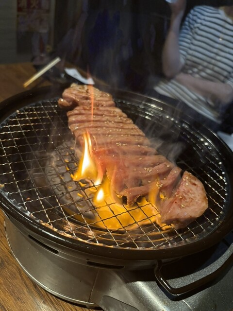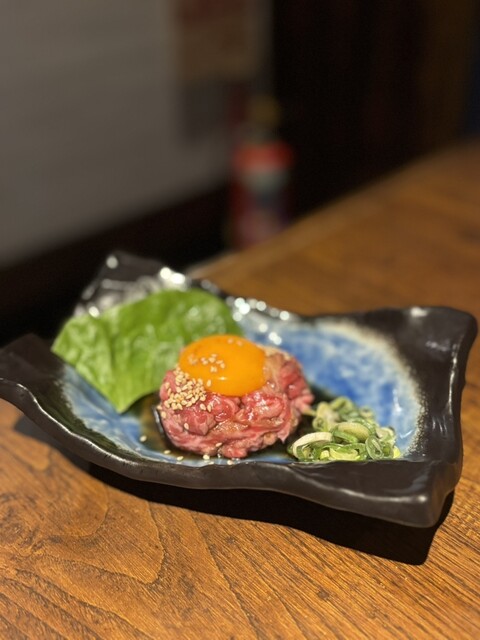 恐らく食べる直前に炙られたであろうユッケは表面に香ばしい焼き目が付いていて内側のとろけるようなレア部分との食感のコントラストがたまらなく美味しい♡