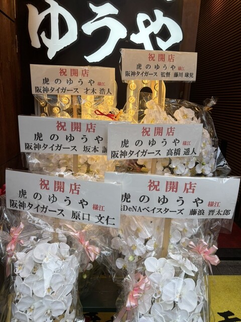 お店の名前から気付かれる方も多いかとは思いますが、こちらのお店はあの2014年阪神タイガースにドラフト1位指名で入団された横山雄哉さんがオーナー今年の7月にオープンしたばかりのお店の前には藤川監督や才木投手などからの祝花が出ていてめっちゃテンション上がる(٩Üو)↑上がったテンション抱えてお店へ〜♂️♀️本日の注文は