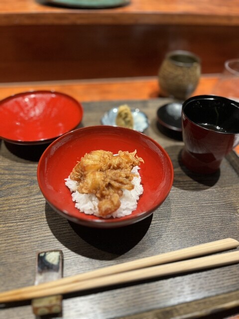 いつもは〆でまぐろご飯をいただくのですが、初めてかき揚げ天丼を。