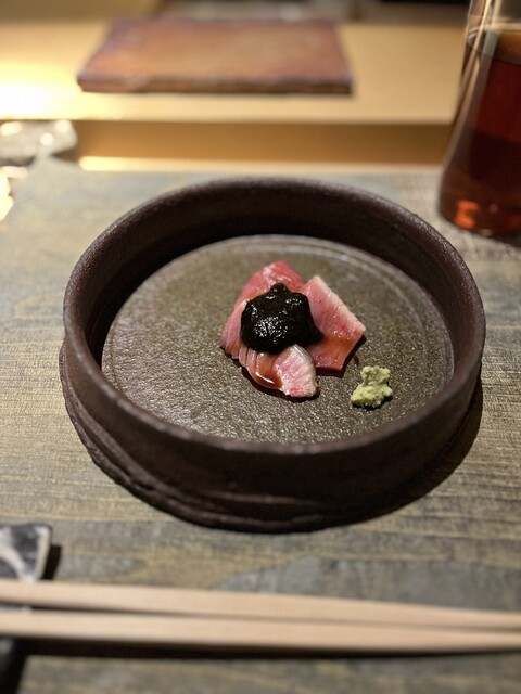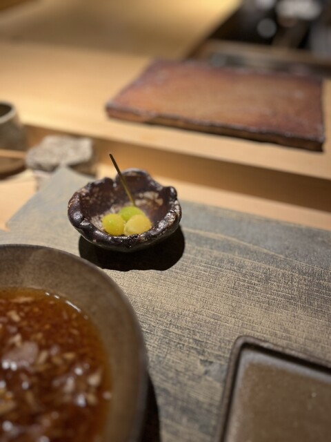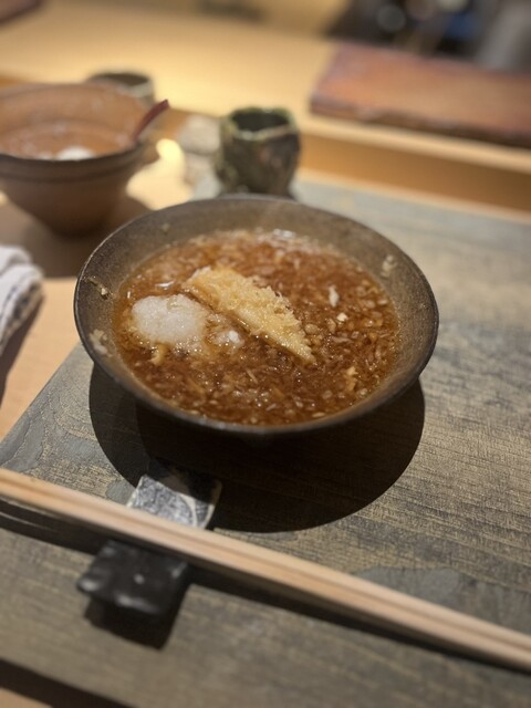 思いっきりピンぼけしていますが、海老のしんじょときのこのお椀からスタート。